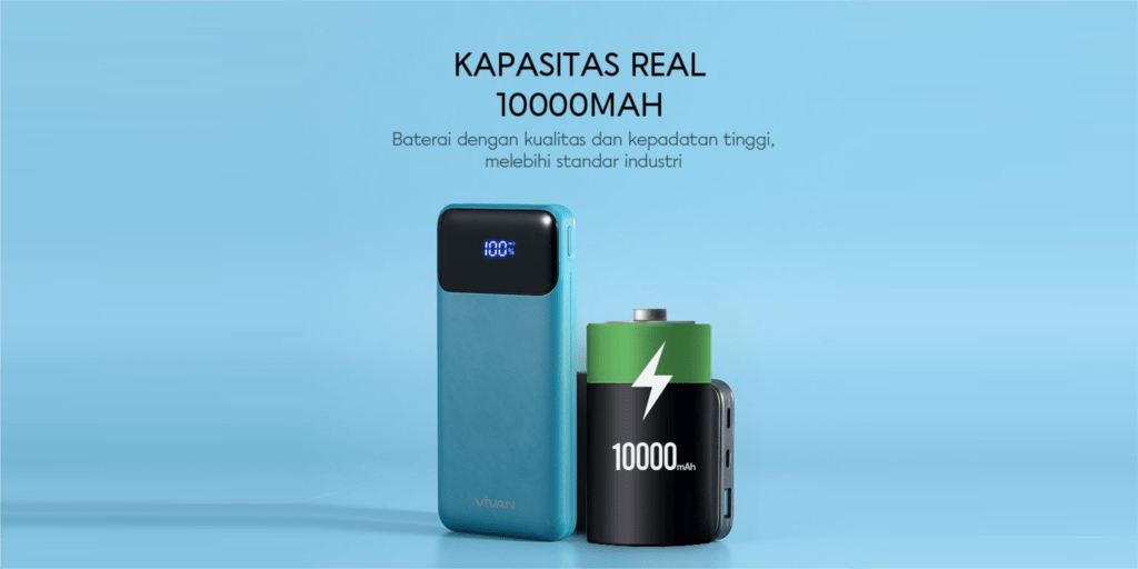 Rekomendasi pertama ada Vivan VPB X10 mengusung kapasitas sebesar 10000mAh serta mampu melakukan pengisian 2 HP sekaligus dan memantau sisa kapasitas daya lebih mudah berkat layar indikator. Menariknya, sudah ada fitur Flight Friendly sehingga aman dibawa saat naik pesawat, desain minimalis, anti slip dan tidak licin sehingga mudah digenggam.