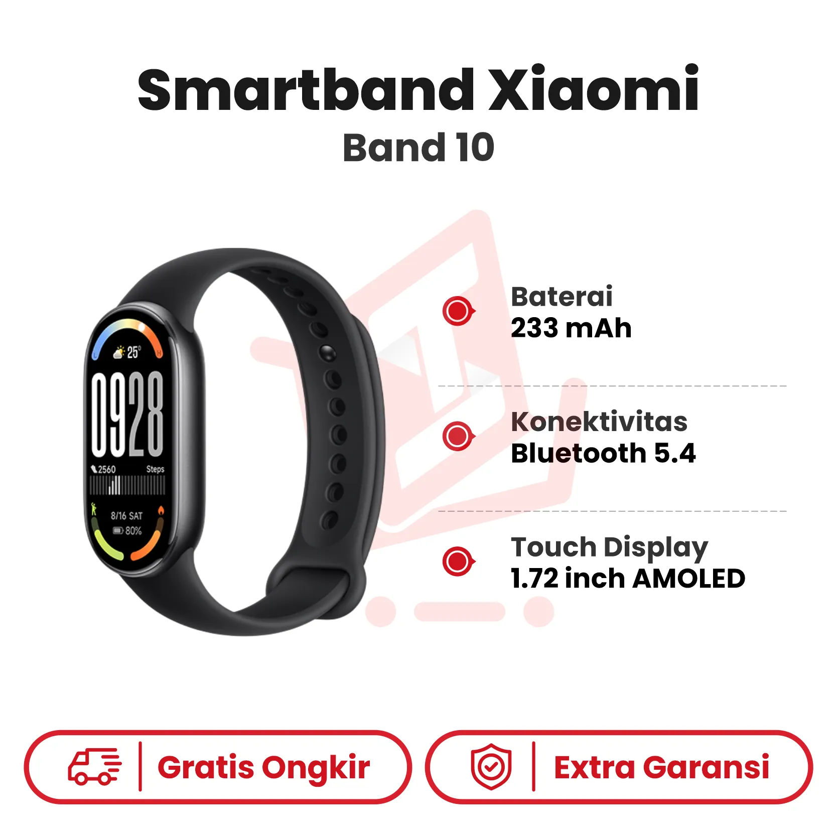 Smartband generasi ke‑sepuluh dari Xiaomi ini membawa peningkatan besar dari versi sebelumnya, terutama pada bagian layar yang kini lebih besar, lebih terang, dan lebih responsif dengan panel AMOLED beresolusi tinggi. Selain tampilan, performa pelacakan juga ditingkatkan lewat sensor 9-axis yang lebih akurat untuk mendeteksi berbagai aktivitas fisik, termasuk renang. Fitur-fitur kebugaran seperti VO₂ max, beban latihan, dan waktu pemulihan kini hadir untuk mendukung latihan yang lebih optimal, serta dipadukan dengan desain ramping dan stylish yang cocok digunakan sehari-hari maupun saat berolahraga.