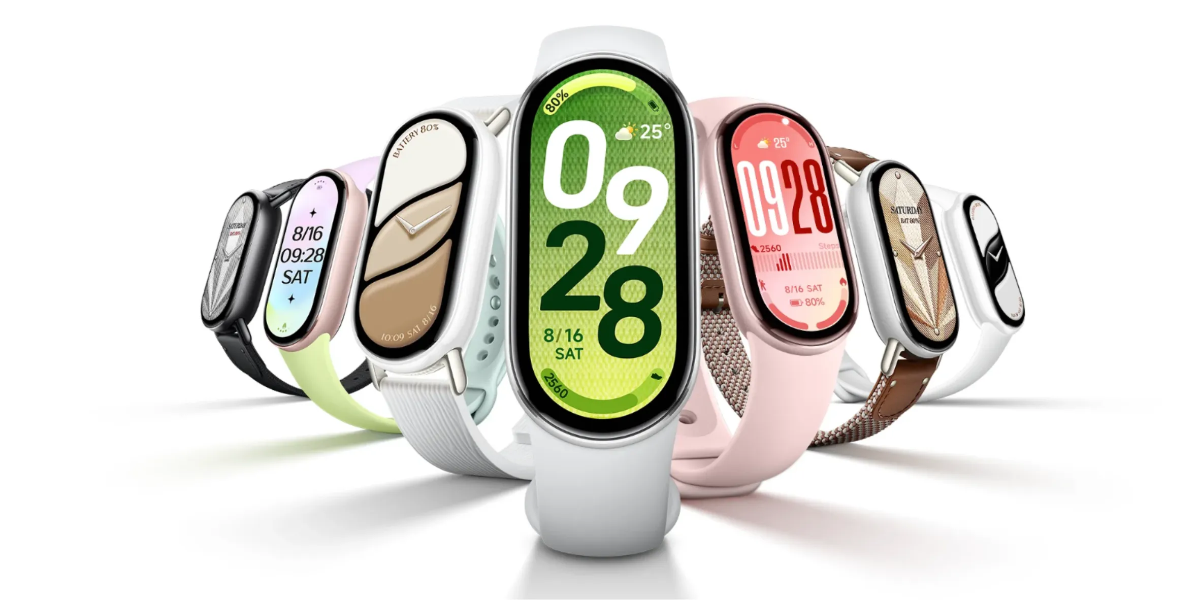 Tersedia lebih dari 200 tampilan jam yang bisa disesuaikan, termasuk dukungan AOD. Strap tersedia dalam beberapa warna (Midnight Black, Glacier Silver, Mystic Rose) serta versi Pearl White Ceramic. Strap dari TPU dan fluororubber nyaman dipakai sehari-hari atau saat tidur.