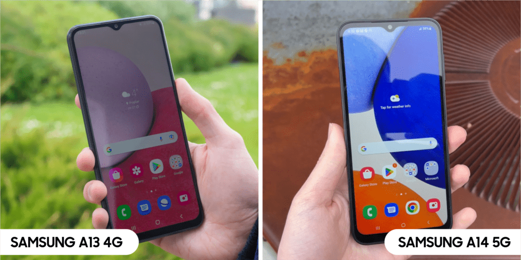 A13 4G menyuguhkan warna Blue, Black dan Peach sedangkan pilihan warna A14 5G lebih menarik ada Silver, Dark Red, Black dan Light Green. Untuk kamu yang suka desain simple, kamu bakal suka sama Samsung A13 4G. Nah, kalau kamu adalah orang yang ceria, kamu bisa pilih Samsung A14 5G.