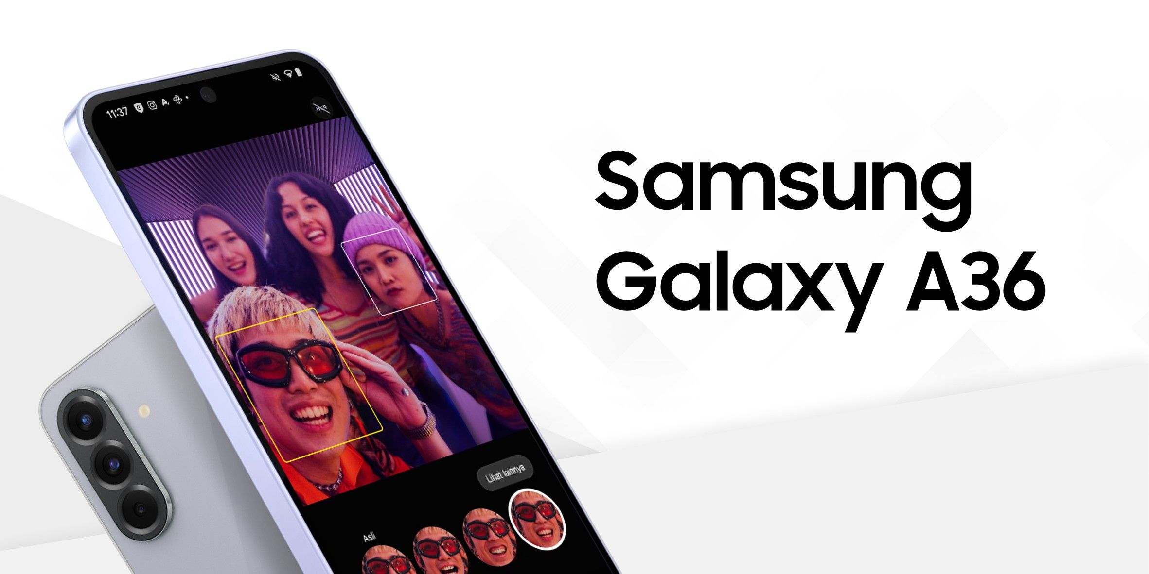 Samsung A36 juga punya kamera yang nggak kalah keren. Yang paling istimewa, Samsung mengusung model kamera seperti Samsung Z Fold6 di kamera A36 ini lengkap dengan ringnya. Â